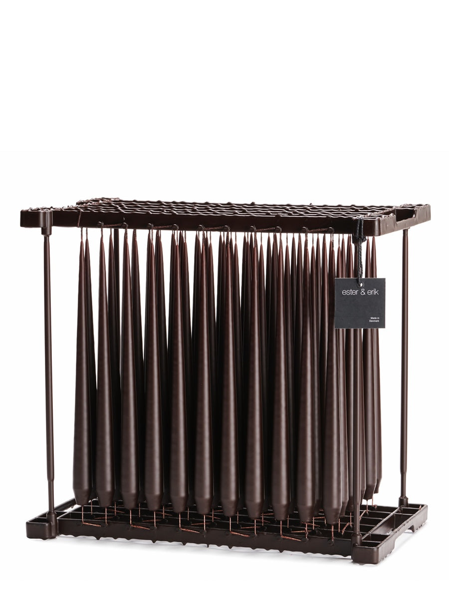 Beautiful, handcrafted tapered candles in matte Espresso, colour 27, by Ester & Erik, a small Danish family run business. Artisans and experts for over 30 years in creating the most elegant tapered candles. Amazing 8 hours of burn time due to the traditional hand dipped method, this also makes these candles clear and steady flamed.