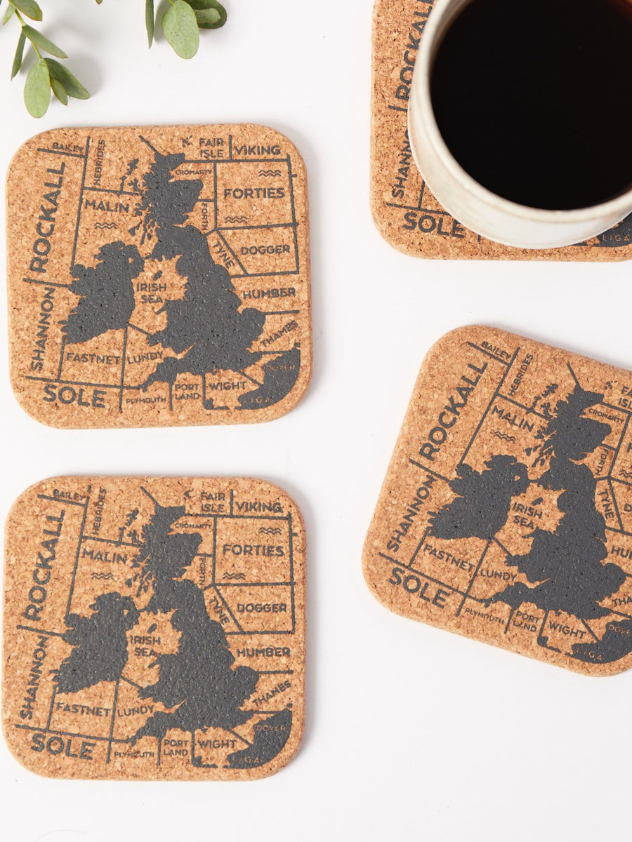 Liga's Natural Cork Collection is made from organic cork, a sustainable and regenerative material. These Liga Cork Coasters celebrate a century of the Shipping Forecast – a true British national treasure. For one hundred years, its soothing, familiar tones have offered comfort and reassurance, both to those at sea and to those on land. Whether guiding mariners through their voyages or helping insomniacs find rest, the Shipping Forecast has become an iconic part of British life. The perfect eco-coaster for the kitchen or the dining table. Sustainable, stylish and practical this set of four square cork coasters is a great addition to any home and will bring warmth and natural style to any table setting.