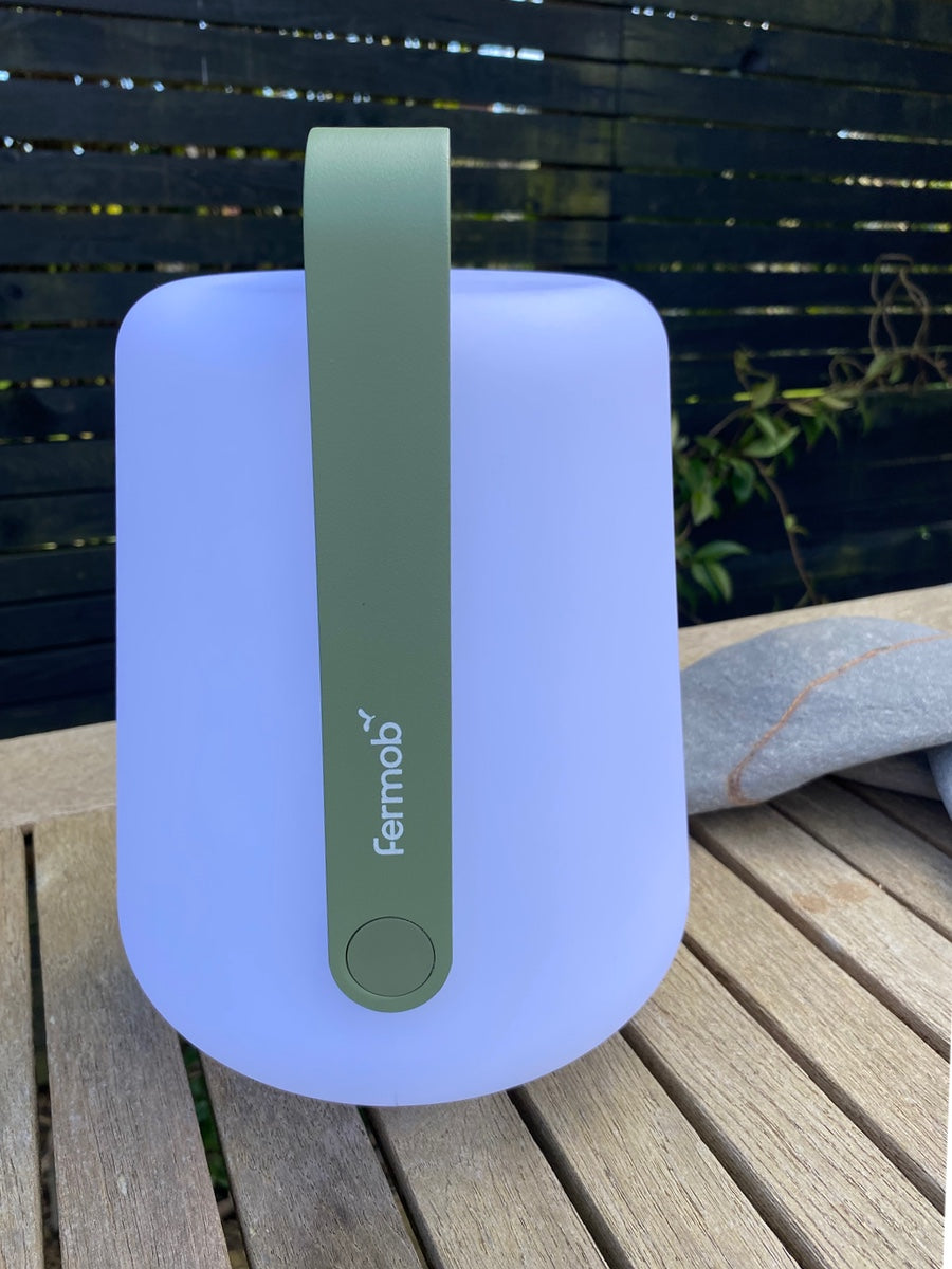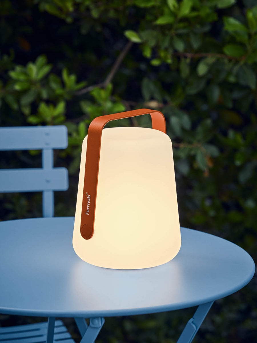 A fully mobile outdoor garden lamp, which is also great for camping, the beach, sheds, studios or any dark indoor space where some additional light is required and power is not easily accessible. A modern, stylish design, The Balad 2 Lamp H25cm is available with a range of powder-coated coloured handles and is perfect as a table lamp while entertaining which can be easily carried to any area of the garden you may wish to light. The Fermob Balad 2 Lamp also looks great indoors thanks to its understated, modern design. The shatter-proof Balad Lamp can easily be transported and is resilient in use. This timeless lamp will last season after season.