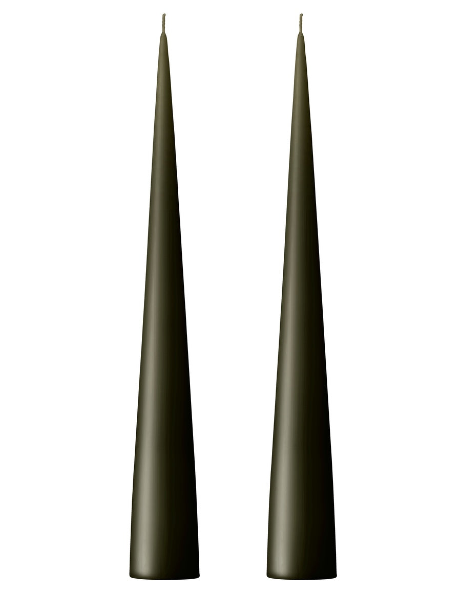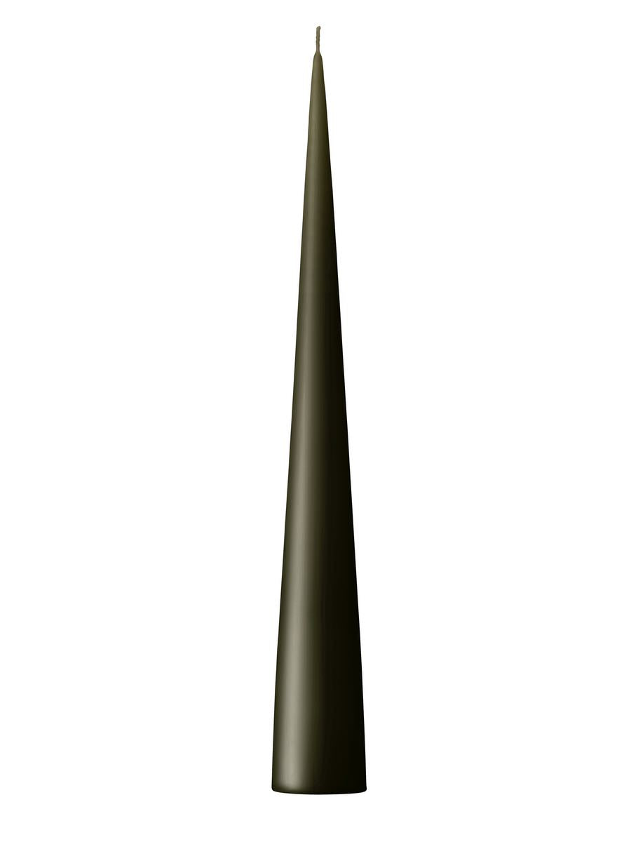 Ester & Erik stunning hand made cone candles. This is colour 63 Deep Forest, a warm dark green, one of our most popular candles, 25 & 37 cm high. Self extinguishing, these designer cone candles burn smoothly and slowly, are non drip, soot free and burn for approx 13 & 25 hours.
