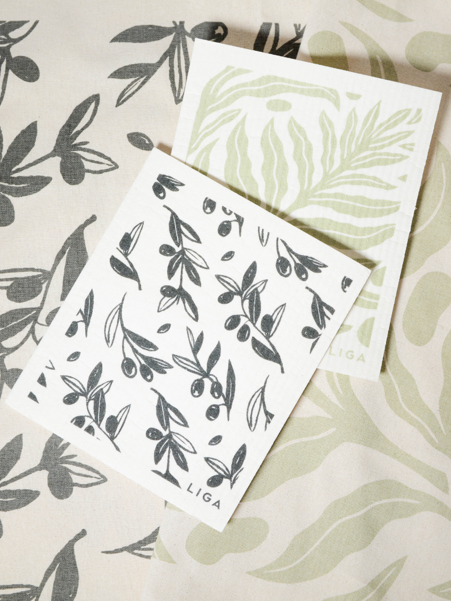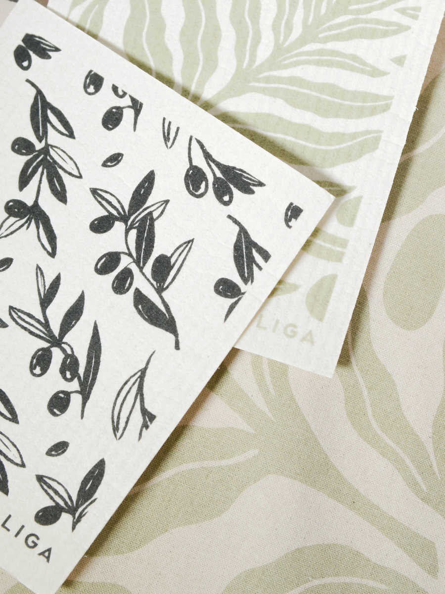 With a life span of up to 12 months these are fun and stylish. Each cloth with a different illustration. New for 2026 - Olive & Pip and Phytophiliia (meaning love of plants). Sage green leaves on one cloth and black olive branches on the other.