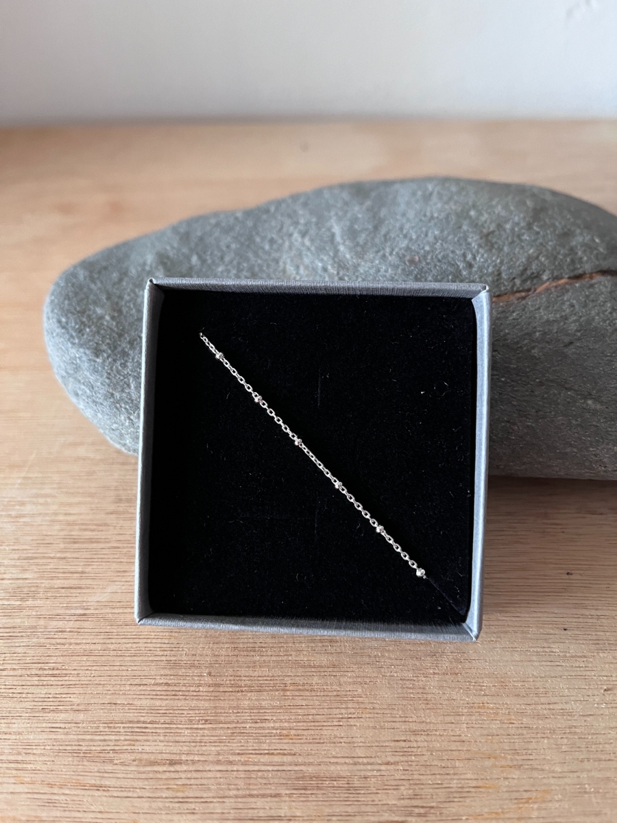 This delicate Silver Satellite Chain Bracelet features small polished balls dotted along the length which catch the light. Minimalist and extremely wearable, this Satellite Chain Bracelet will be your go-to piece for day or evening.